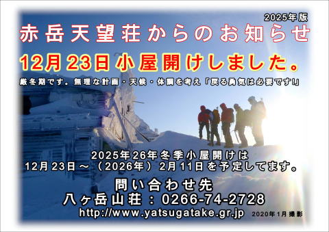 <八ヶ岳山荘>(年末年始営業時間AM5時~PM6時(18時)